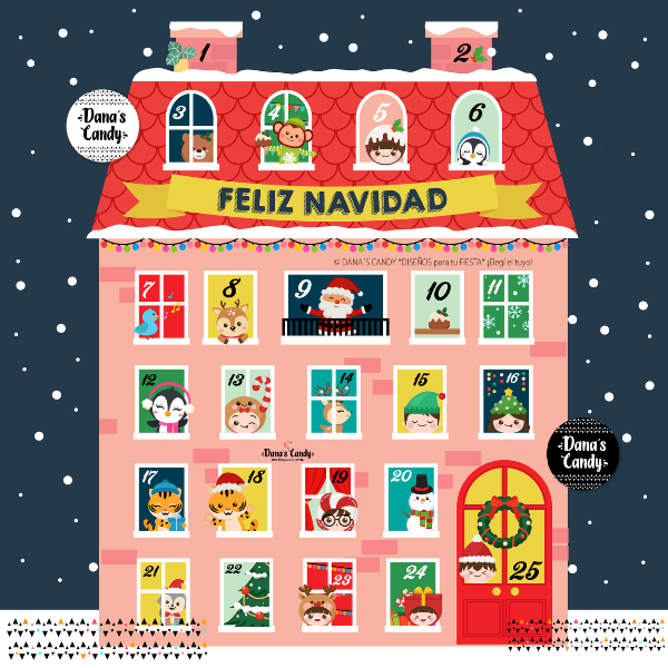 ✔️ 1 Calendario de adviento Casita Navideña con 25 días y distintos personajes, archivo pdf imprimible en formato A3 o A4 para unir.