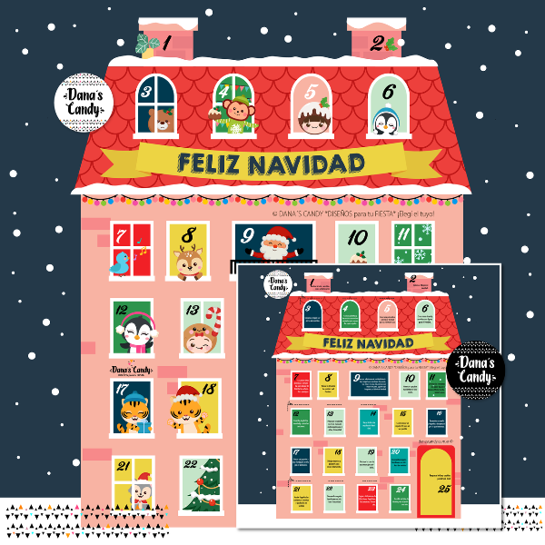✔️ 1 Calendario de adviento Casita Navideña con 25 actividades, archivo pdf imprimible en formato A3 o A4 para unir.