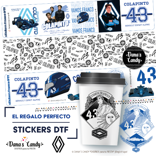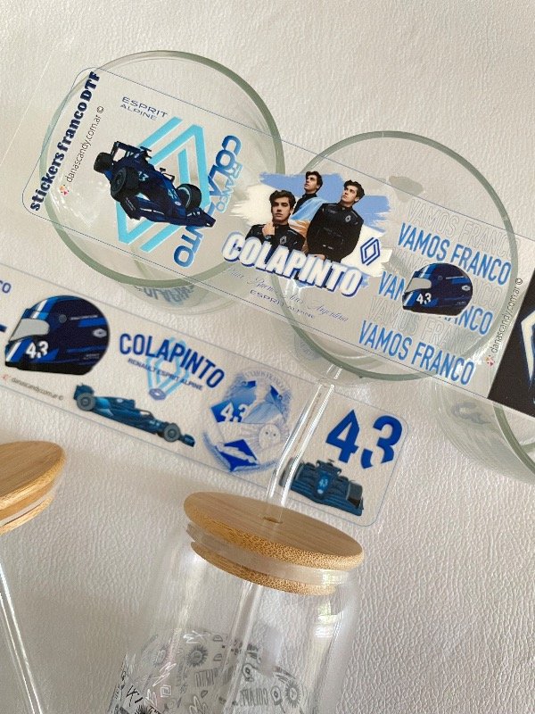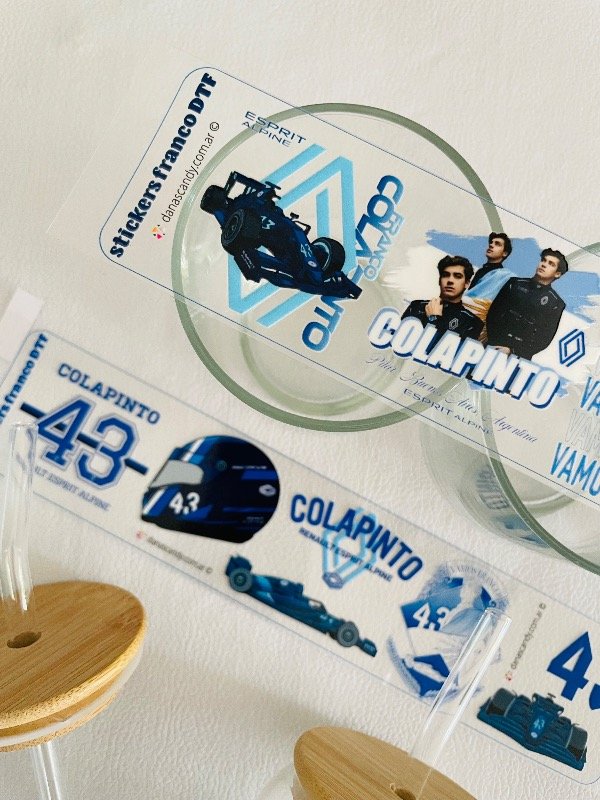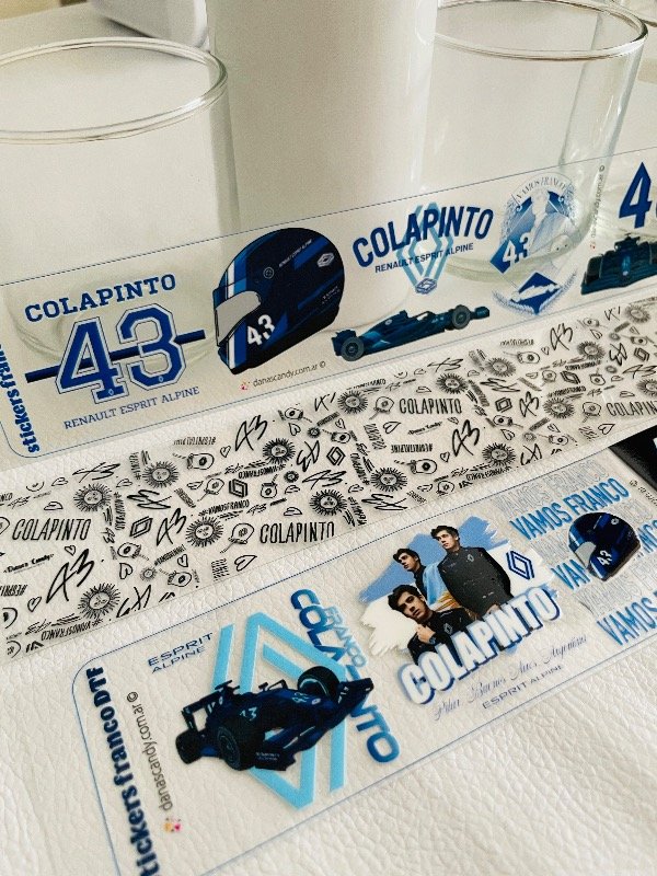 Diseñado con el estilo oficial de Renault Esprit Alpine, este kit de stickers DTF UV de Franco Colapinto es perfecto para decorar souvenirs y regalos 🎁 en variedad de superficies.
